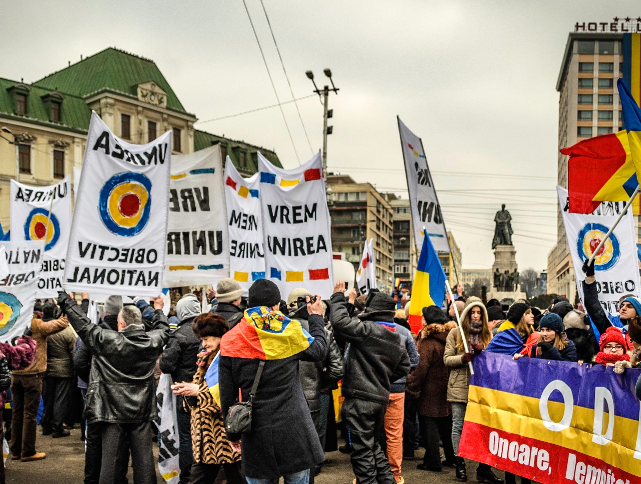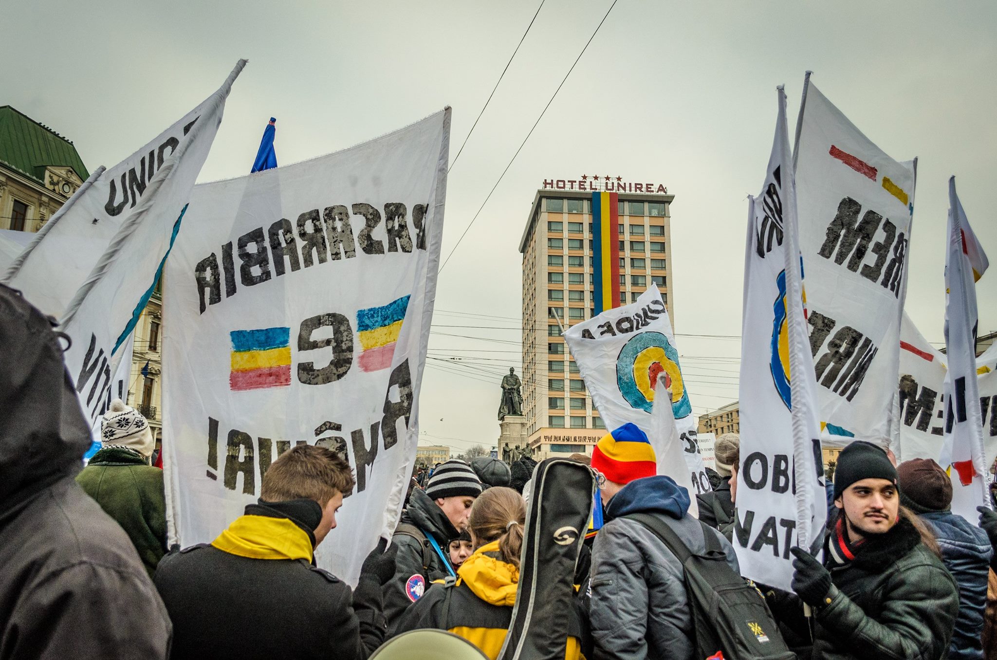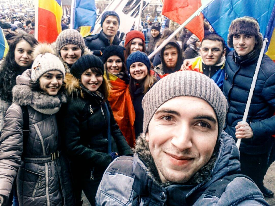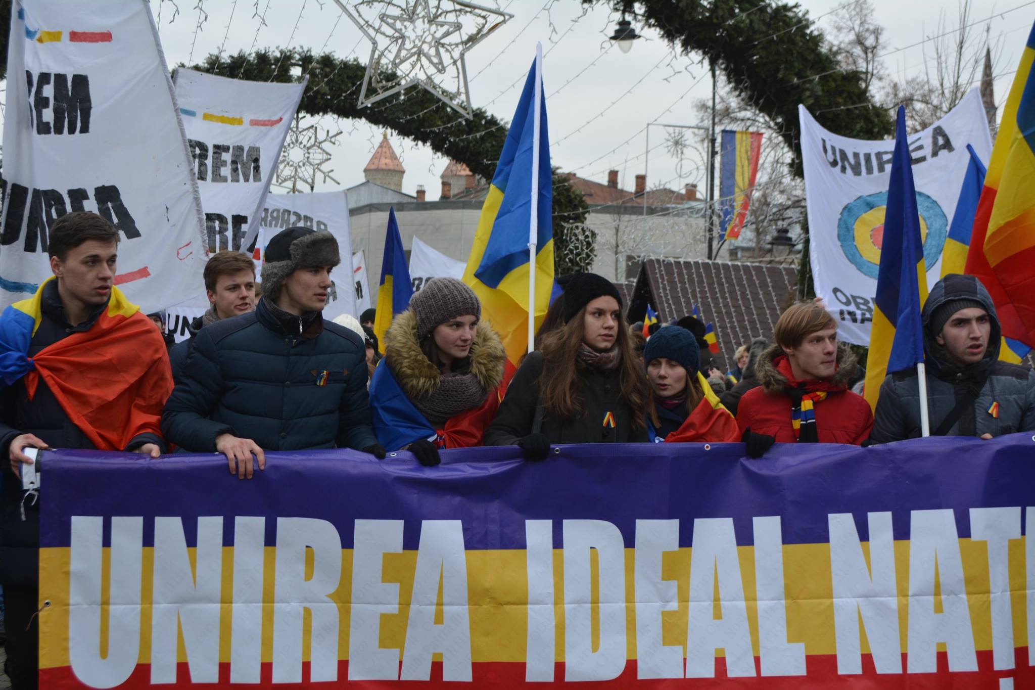 Cu bannere și pancarte unioniste, tinerii din Republica Moldova, au scandat lozinci precum: „Unire”, ”Unitate Națională”, ”Jos hotarul de la Prut”, ”Basarabia – Pământ Românesc” etc.
