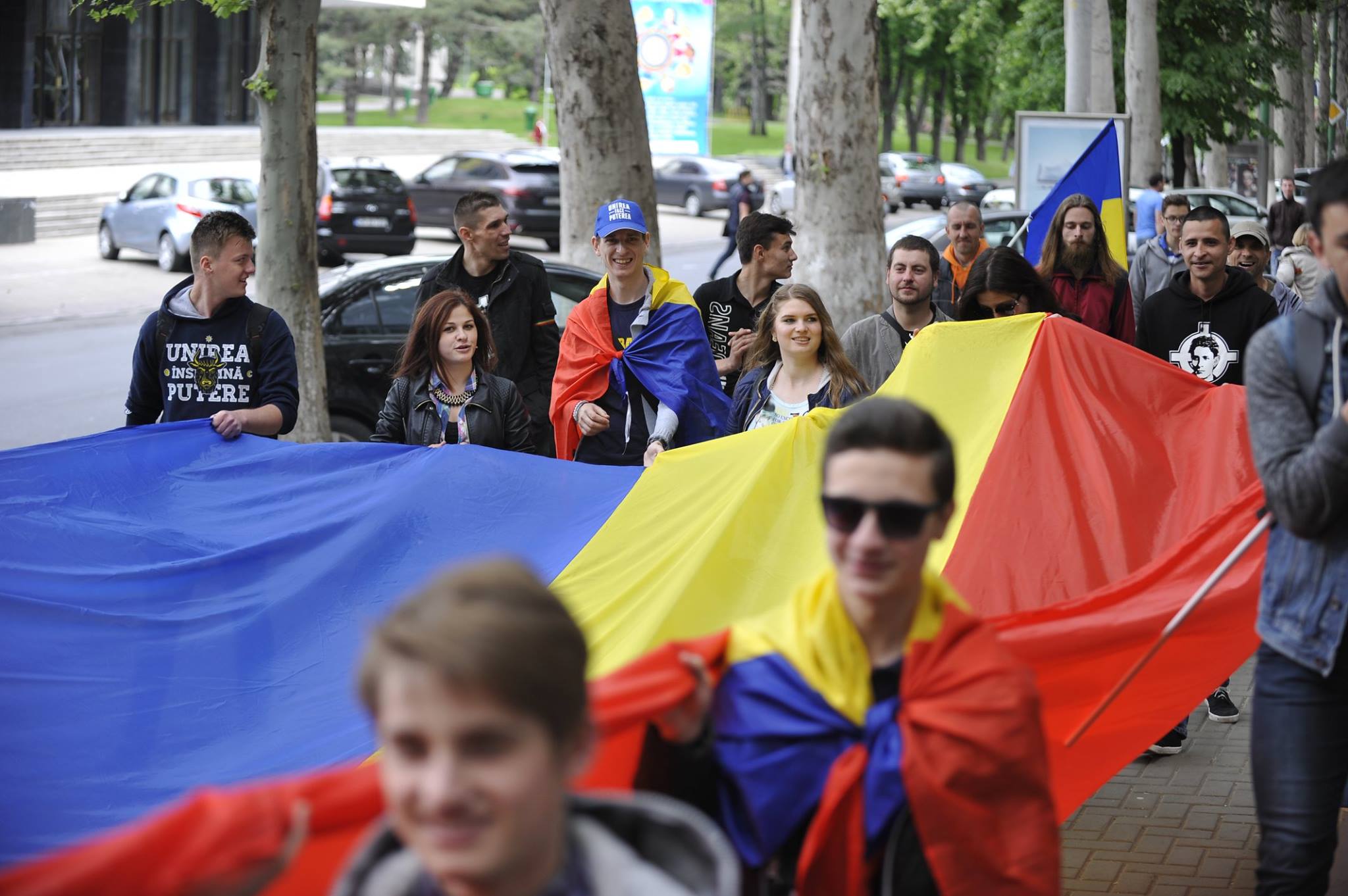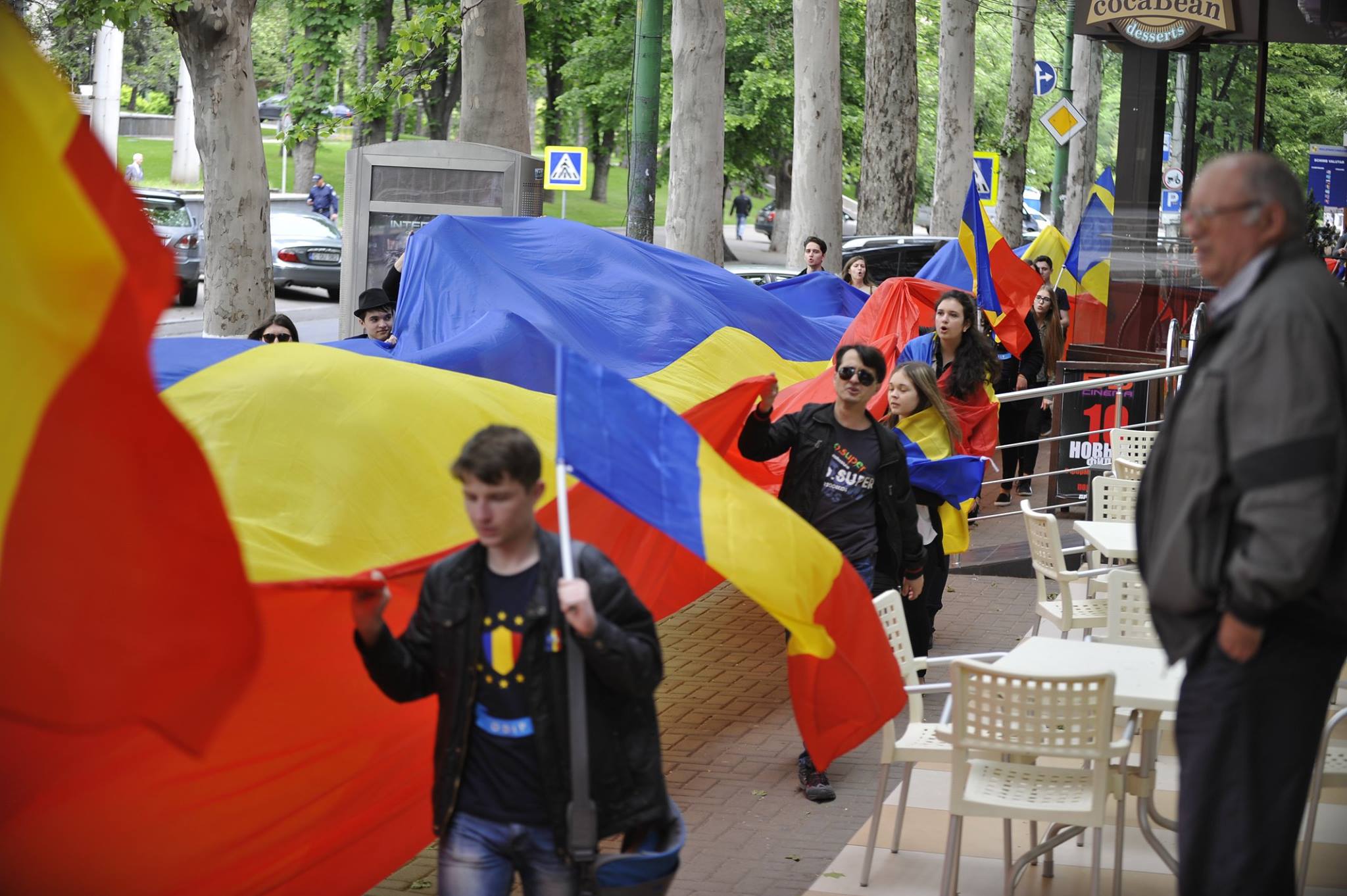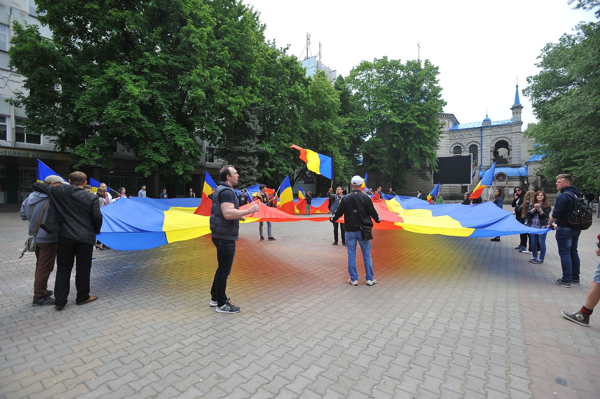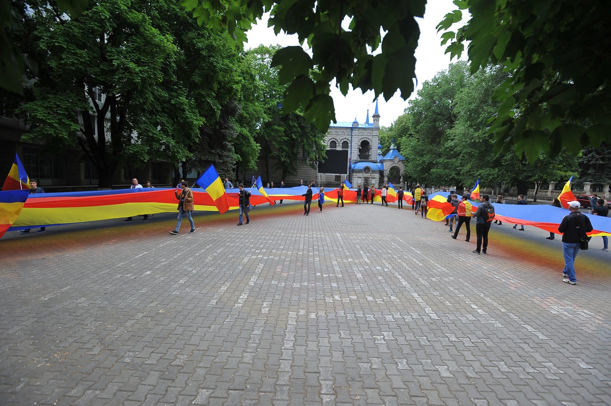 Zeci de tineri și simpatizanți ai Asociației Obștești „Onoare, Demnitate și Patrie” (ODIP) au organizat astăzi un flashmob inedit cu un tricolor imens de 50 de metri lungime și au cerut unirea Republicii Moldova cu România.